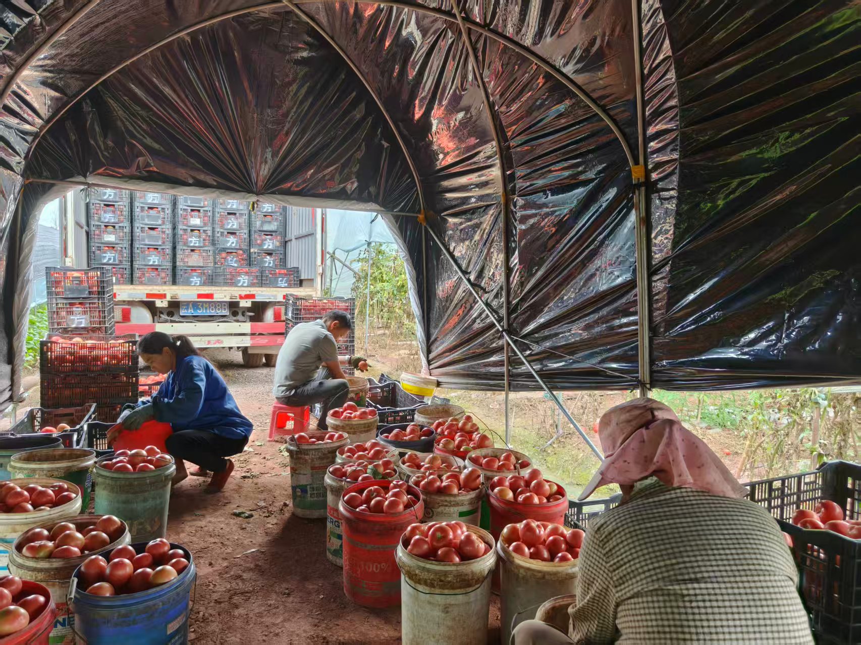 为保障西红柿新鲜度,基地建立了高效的产销衔接机制。“这些新鲜西红柿得跟时间赛跑。”方开雄指着基地前正在装车的大货车说,“每天采摘、分拣完,最晚下午就能装车,2小时内准能送达昆明批发市场,主要销往西安等周边地区,确保‘田间鲜’直达‘餐桌前’。”