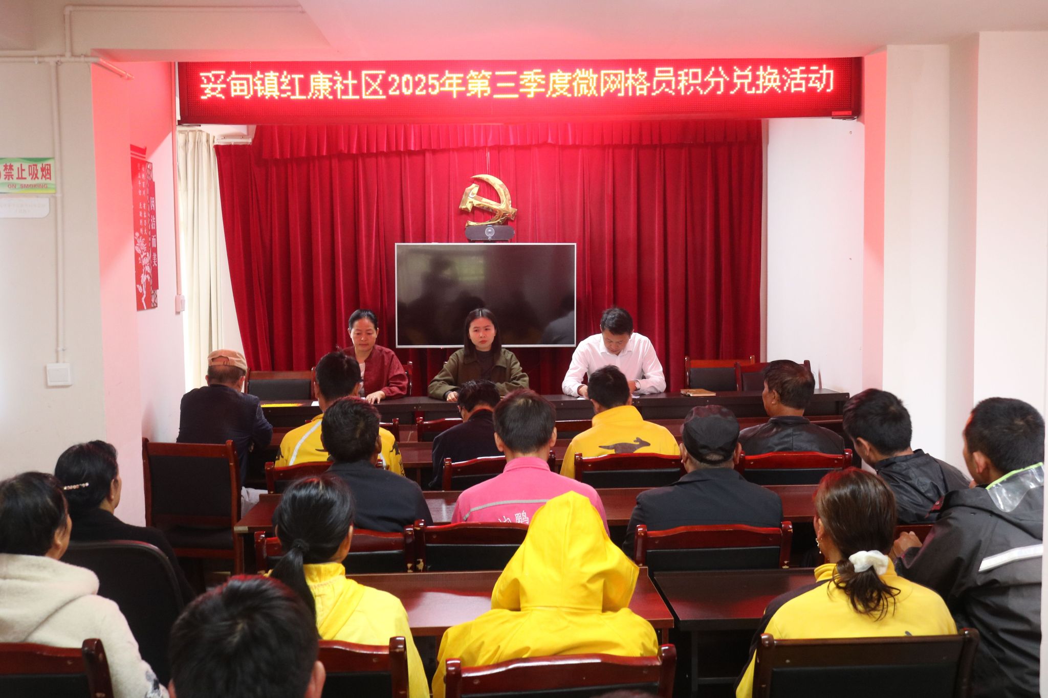 9月26日上午,妥甸镇红康社区开展了一场微网格员积分兑换活动,一大早,社区楼栋长、居民小组长,外卖骑手和部分行业从业人员便来到社区积分超市前等候,满怀期待地参与到活动中。