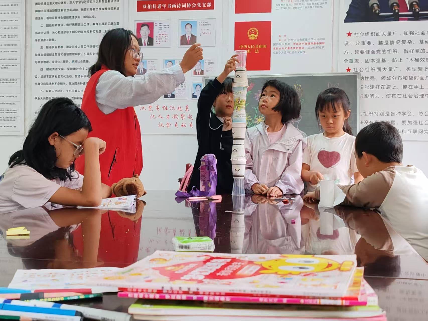 东兴社区新时代文明实践站充分整合各方资源,通过联合县总工会、县社会工作部、团县委、县妇联、社区工作者、大学生志愿者等力量,实现资源共享,构建起覆盖青少年儿童成长的专业化关爱支持网络,有效提升托管班整体服务效能。同时联合共建单位,招募有教育经验、有爱心耐心的志愿者、在校大学生构成爱心托管志愿队伍,负责协助课业辅导和社区活动,保障课程设计和活动策划的科学性与趣味性,通过“托、管、带”一站式服务,让孩子们度过一个快乐充实的假期。