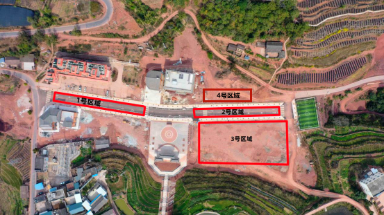 爱尼山乡小集镇新大街两侧及广场东侧空地(图示1、2、3、4号区域)。
