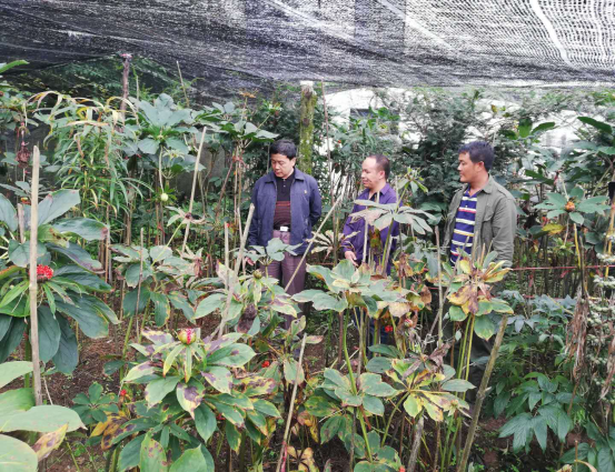 红山村委会地处哀牢山深处,平均海拔2000米,属高山冷凉山区,传统农业生长周期长、产量低。自2015年开展脱贫攻坚以来,挂包单位同(石咢)嘉镇人民政府、村干部一起立足自然资源,探索发展区域性特色产业,因地制宜在特色产业发展上做文章,构建“栽好四棵树(核桃、茶叶、花椒、棕头),种好两种药(黄精、重楼),养好两头畜(黄牛、生猪)”产业发展思路,实施产业精准扶贫。