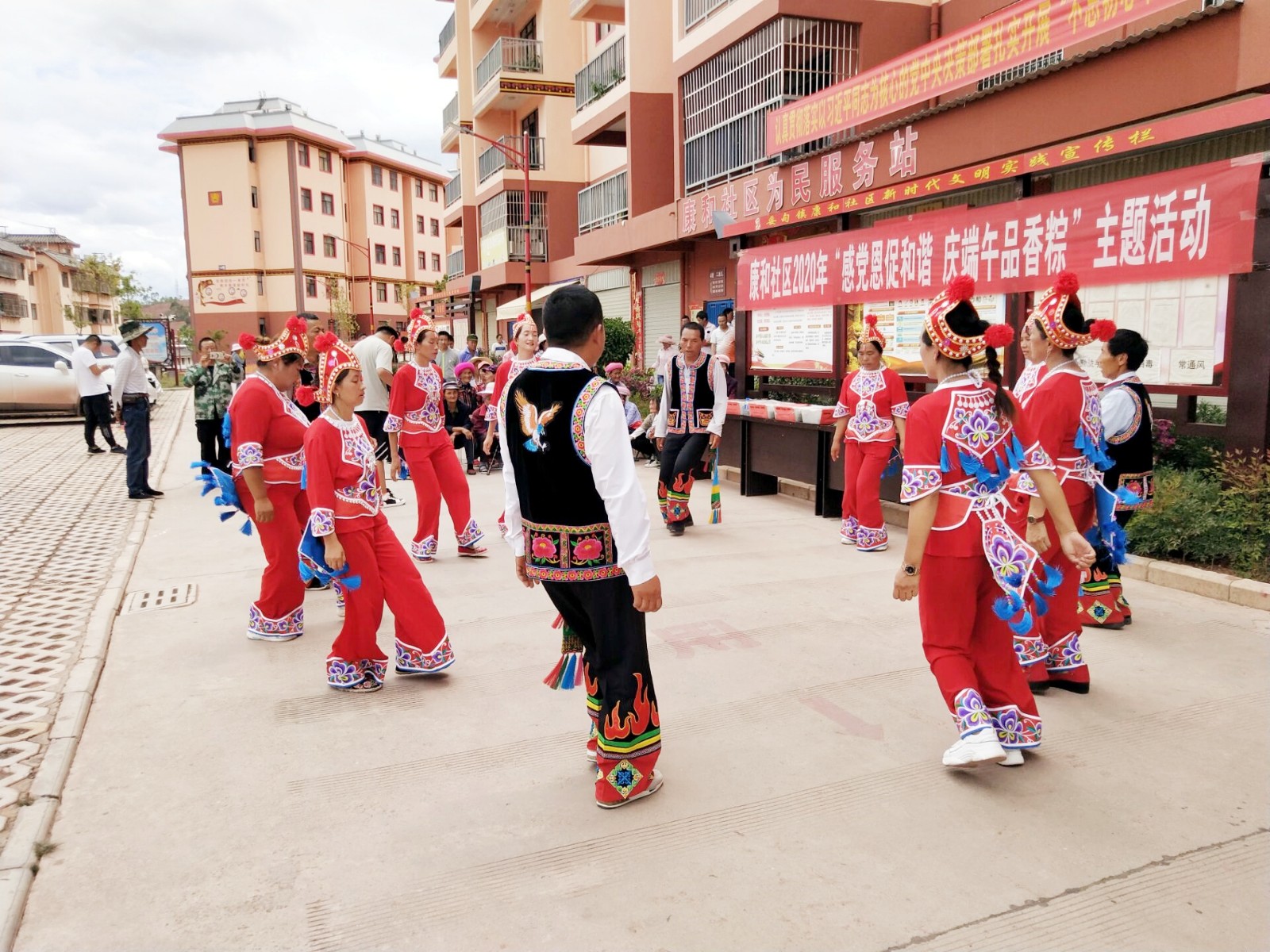 为了能尽快让易地扶贫搬迁群众融入“大家庭”,妥甸镇在搬迁入住前积极开展集中培训,从“感党恩、听党话、跟党走”到“立志气、做能人”,从“守法纪、讲诚信”到“美环境、转旧习”,动员搬迁居民养成良好的生活习惯,尽快从“农民”转变为“市民”。认真开展“树好红黑榜,建美新家园”活动,积极倡导鼓励“红八条”和反对“黑八条”,对2栋“平安楼栋”,2栋“文明楼栋”,20户“平安家庭”,20户“文明家庭”进行表彰,真正引导社区居民“向上向善”。同时为了实现搬迁户“自己的事情自己做,大家的事情大家办”,康和社区积极组织开展楼栋长的推选,推选楼栋长13名,12个村社区分散安置点纳入所在地社区管理范围,单独设立了村民小组,推选了小组长和楼栋长,真正体现了搬迁居民的“主人翁”地位,也为社区培养后备干部提供了有利条件;为丰富群众精神文化生活,康和社区在搬迁群众中挑选文艺骨干组建了“民族之花”文艺队,结合传统节日,积极搭建平台,开展少数民族传统节日活动,在潜移默化中增强了搬迁群众的归属感。