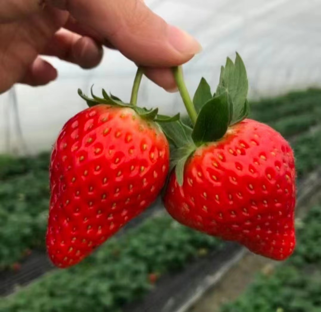 据悉,该品种属大叶红颜草莓,具有植株长势强,株态直立,易于栽培管理,叶片大,新茎分枝多,连续结果能力强等优势;其外形类似圆锥形,硬度大、果面红色有光泽,平均单果重28克,大果重100克以上,具有明显优于其他一般草莓品种的特点。