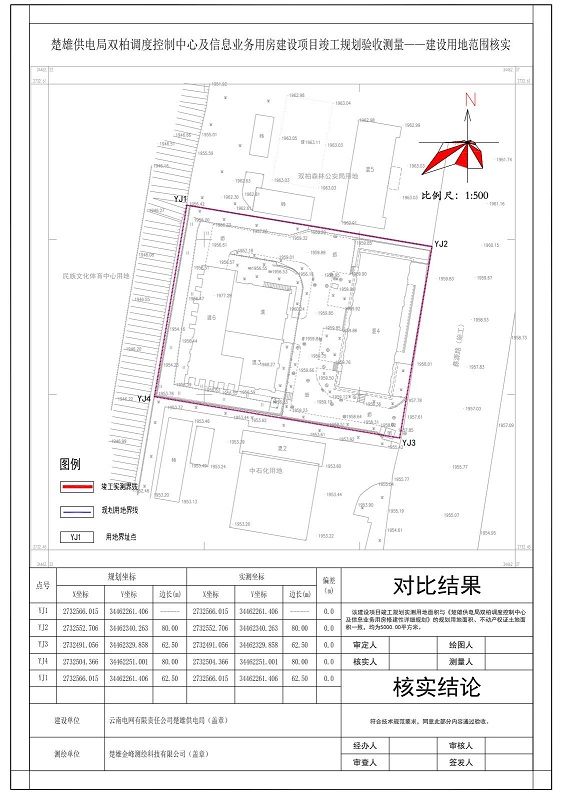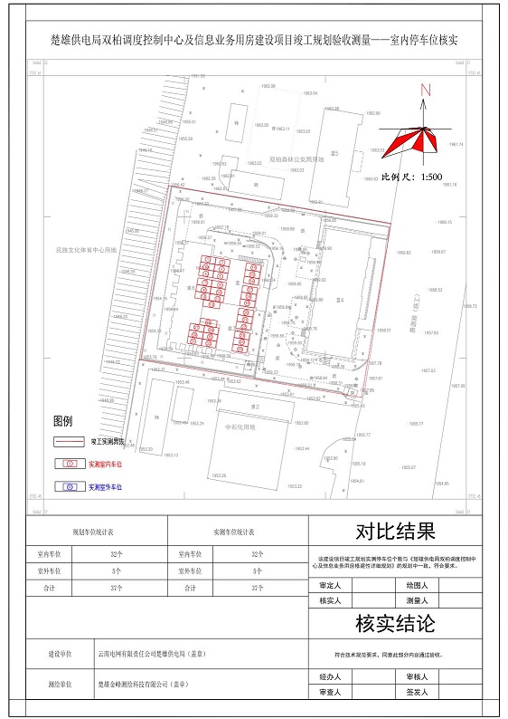 项目简介:云南电网有限责任公司楚雄供电局建设的楚雄供电局双柏调度业务辅助用房项目位于双柏县城彝源路西侧,规划总用地面积5000㎡,其修建性详细规划修改于2022年01月12日审定。2022年05月23日项目建设单位根据审定的项目修建性详细规划修改,办理了楚雄供电局双柏调度业务辅助用房项目《建设工程规划许可证》(建字第双柏县202200009号),规划许可总建筑面积3489.79㎡,其中地上建筑面积3489.79㎡,地下建筑面积0㎡。2024年01月22日云南电网有限责任公司楚雄供电局向我局申请对已竣工的楚雄供电局双柏调度业务辅助用房项目建设内容进行规划核实验收,经测绘单位实测和现场比对审核,实测指标(楚雄供电局双柏调度业务辅助用房项目实测用地面积5000㎡,总建筑面积3510.57㎡,其中地上建筑面积3510.57㎡(为计容建筑面积),地下建筑面积0㎡,建筑密度34.37%,容积率1.29%,绿地率31.93%,此外实测机动车停车位共37个(室内停车位32个,室外停车位5个))。现该项目已实施完毕,经审核整体经济技术指标及公建配套、工程管线等符合该项目规划,根据《楚雄彝族自治州建设工程竣工规划验收管理办法》的规定特进行公示,如对楚雄供电局双柏调度业务辅助用房项目规划核实验收有异议的请在公示期限内与我局联系。
