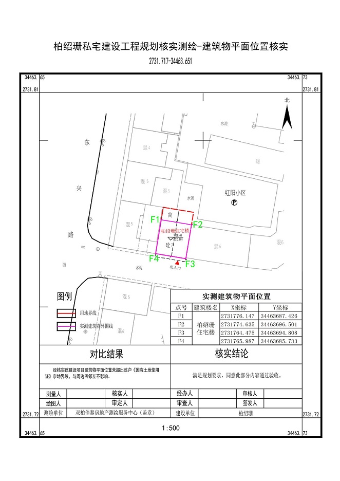2.柏绍珊私宅建设工程规划验收平面位置核实图。