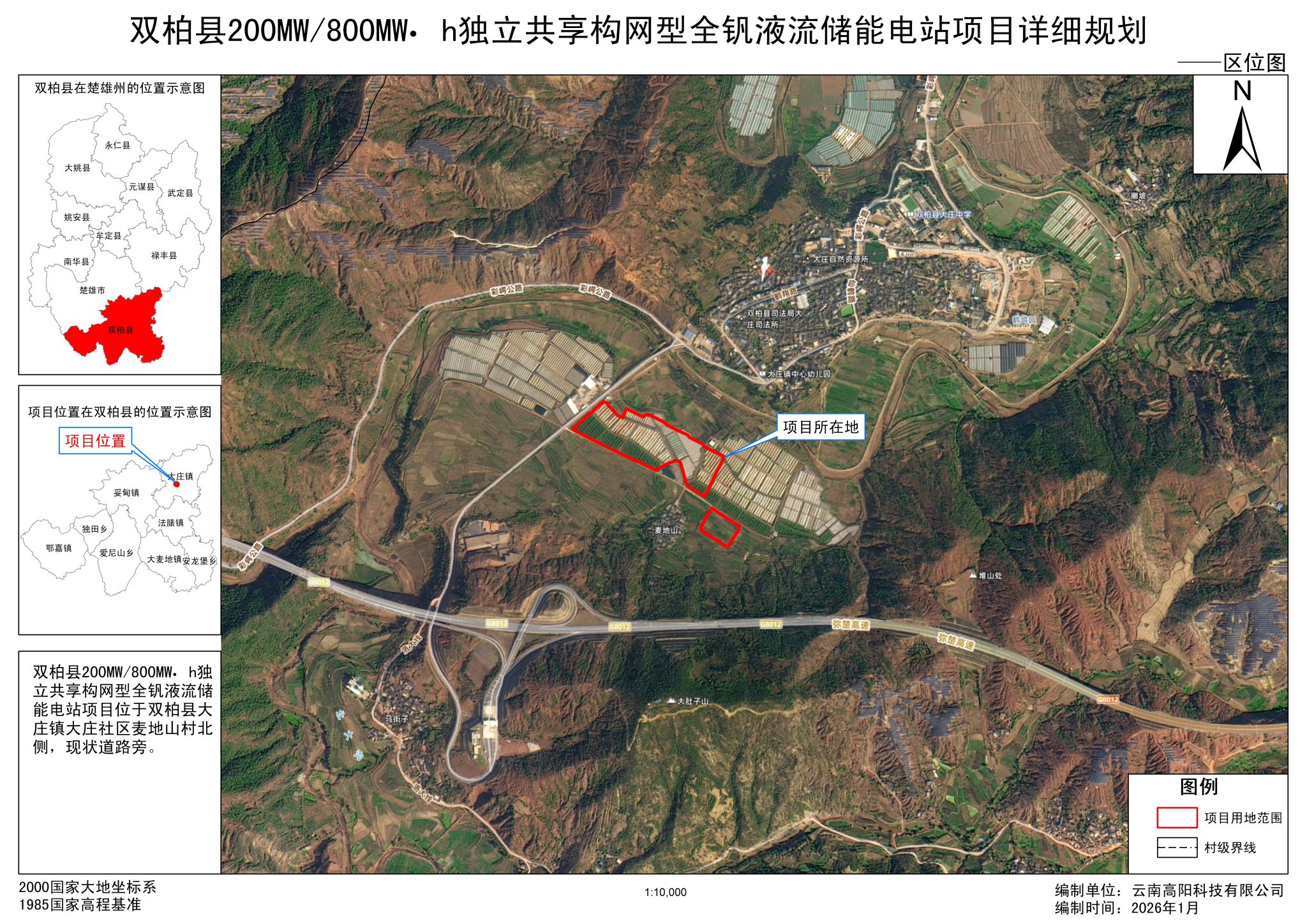 根据《楚雄州实施“阳光规划”的意见》,现对双柏县200MW/800MW•h独立共享构网型全钒液流储能电站项目控制性详细规划进行审查前公示,社会各界人士若有意见和建议,请在公示期内向公示组织单位电话或者书面反映。
