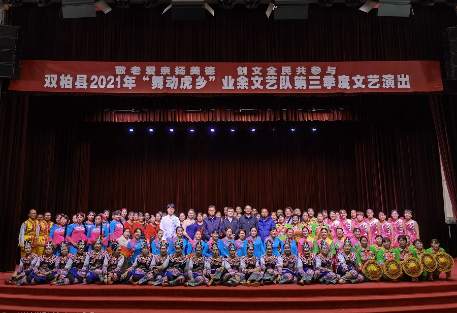 10月15、16日连续两晚,双柏县文旅局、县文化馆联合县委组织部、县教育体育局、县卫生健康局、县人力资源和社会保障局等部门在民族文化中心会堂共同举办2021“舞动虎乡”文艺演出。