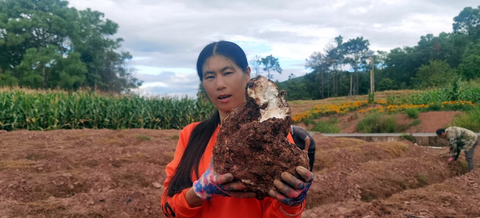 《晾晒茯苓丁的奶奶》 段琳琳 摄