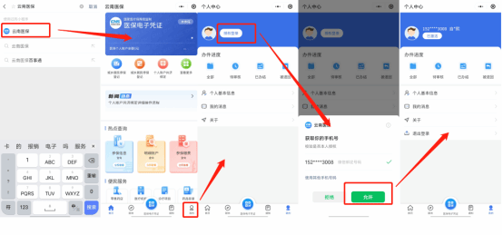 第一步:授权登录。打开微信/支付宝,搜索“云南医保”->我的->授权登录->授权登录成功。