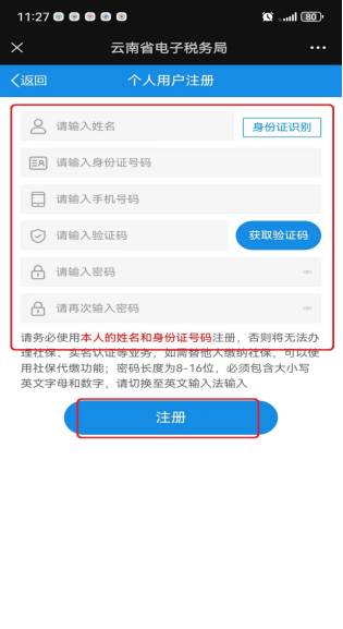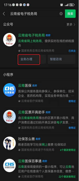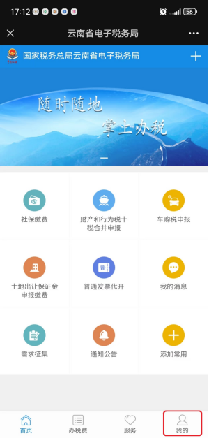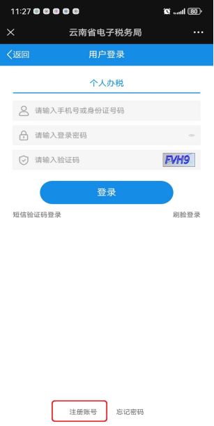 手机搜索“云南省电子税务局”微信公众号并关注,点击“业务办理”进入首页,首次进入请点击右下角“我的—未进入—注册账号”,输入准确姓名、身份证号码、手机号码、有效密码进行注册,注册成功后选择账号密码、短信验证、刷脸任意一种方式进入。