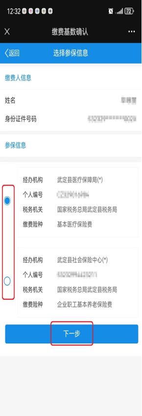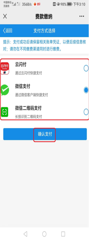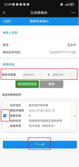 基数申报成功后返回社保缴费功能列表,本人缴费选择“自主缴费”、代他人缴费选择“代他人缴费”进入,选择费款所属期后点击“查询核定信息”,勾选缴费险种点击“下一步”,核对金额无误后点击“确认缴款”,选择云闪付、微信支付、微信二维码支付等任意一种方式缴费即可。