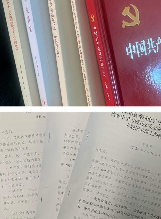 一是自主学习入脑入心。局党组编印部分党史学习教育专题学习资料,读书班成员人手一份,要求读书班成员就习近平同志《论中国共产党历史》《毛泽东 邓小平 江泽民 胡锦涛关于中国共产党历史论述摘编》《习近平新时代中国特色社会主义思想学习问答》《中国共产党简史》《中国共产党历史》《中国共产党楚雄州历史》《中国共产党双柏县历史》等学习材料开展自学,做到读原著、学原文、悟原理,读出了你追我赶的热烈气氛,读出了学以致用的实践效果。