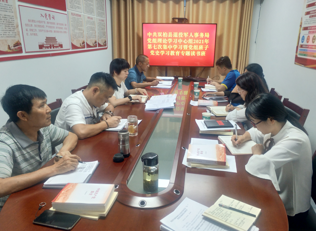 为深入学习贯彻习近平总书记关于学习党史重要论述和习近平总书记在庆祝中国共产党成立100周年大会上的重要讲话精神以及县委李长平书记在县委理论学习中心组第六次集中学习暨县委常委班子党史学习教育专题读书班上的动员讲话和专题辅导报告精神,推动党史学习教育走实走深,取得实效,引导党员干部进一步增强“四个意识”、坚定“四个自信”、做到“两个维护”。7月21日至22日,双柏县退役军人事务局举办党组理论学习中心组2021年第七次集中学习暨党组班子党史学习教育专题读书班学习教育活动,取得良好效果。