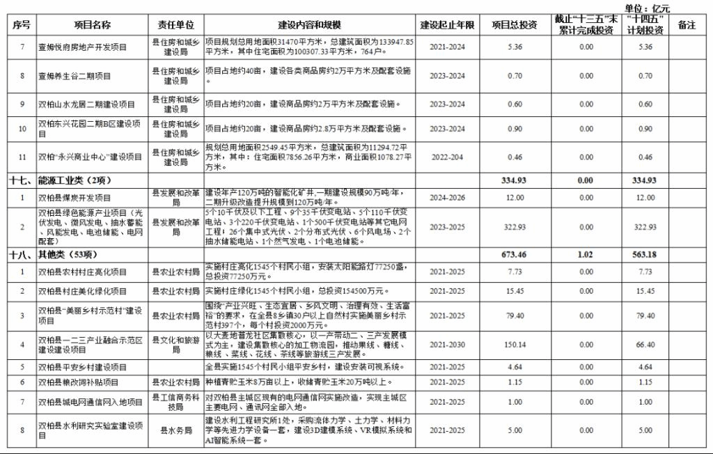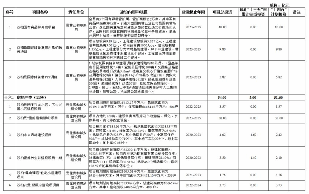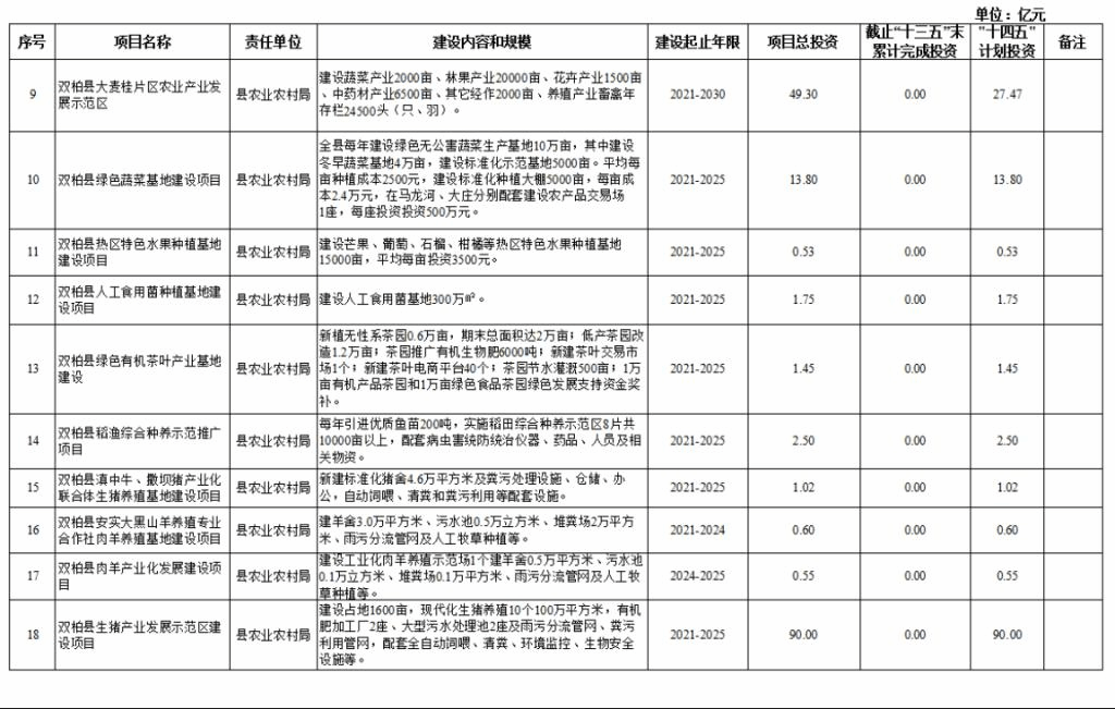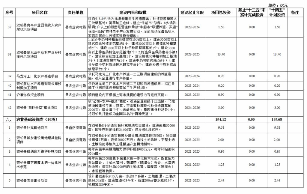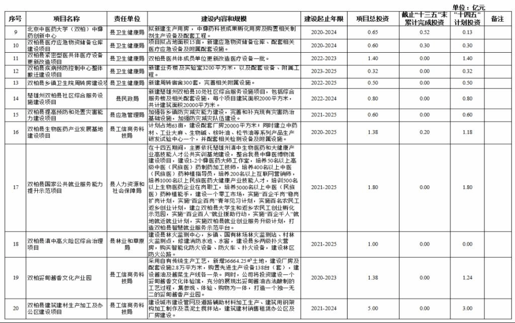 双柏县“十四五”重大项目库规划情况说明