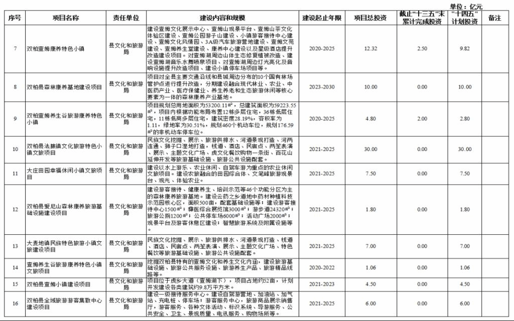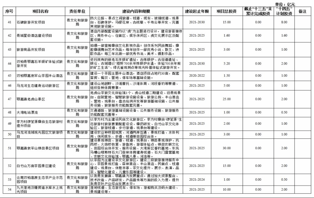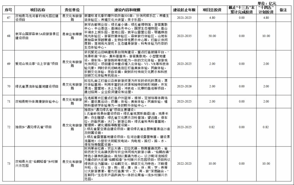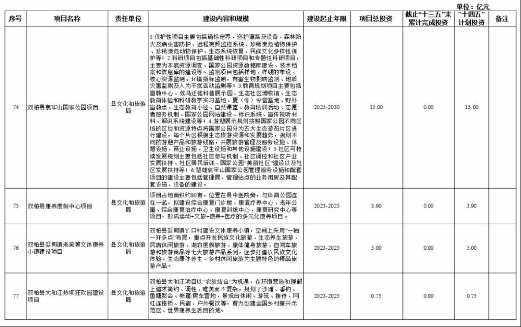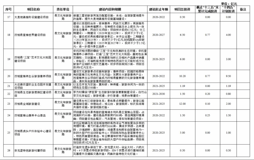 双柏县“十四五”重大项目库规划情况说明