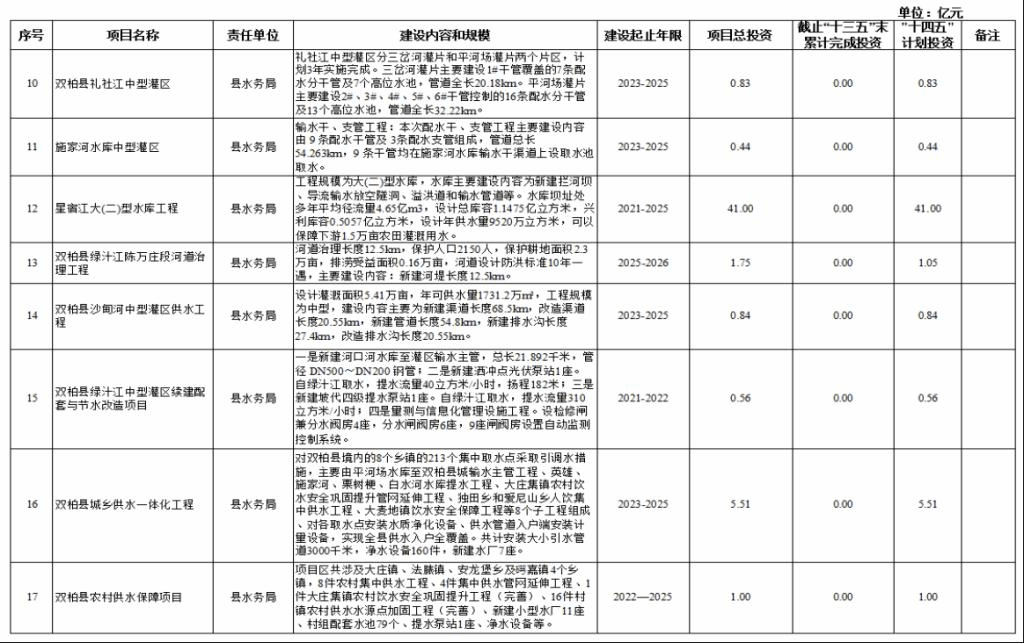 六、农业基础设施类项目10项,项目总投资194.12亿元,“十四五”期间计划投资149.68亿元。