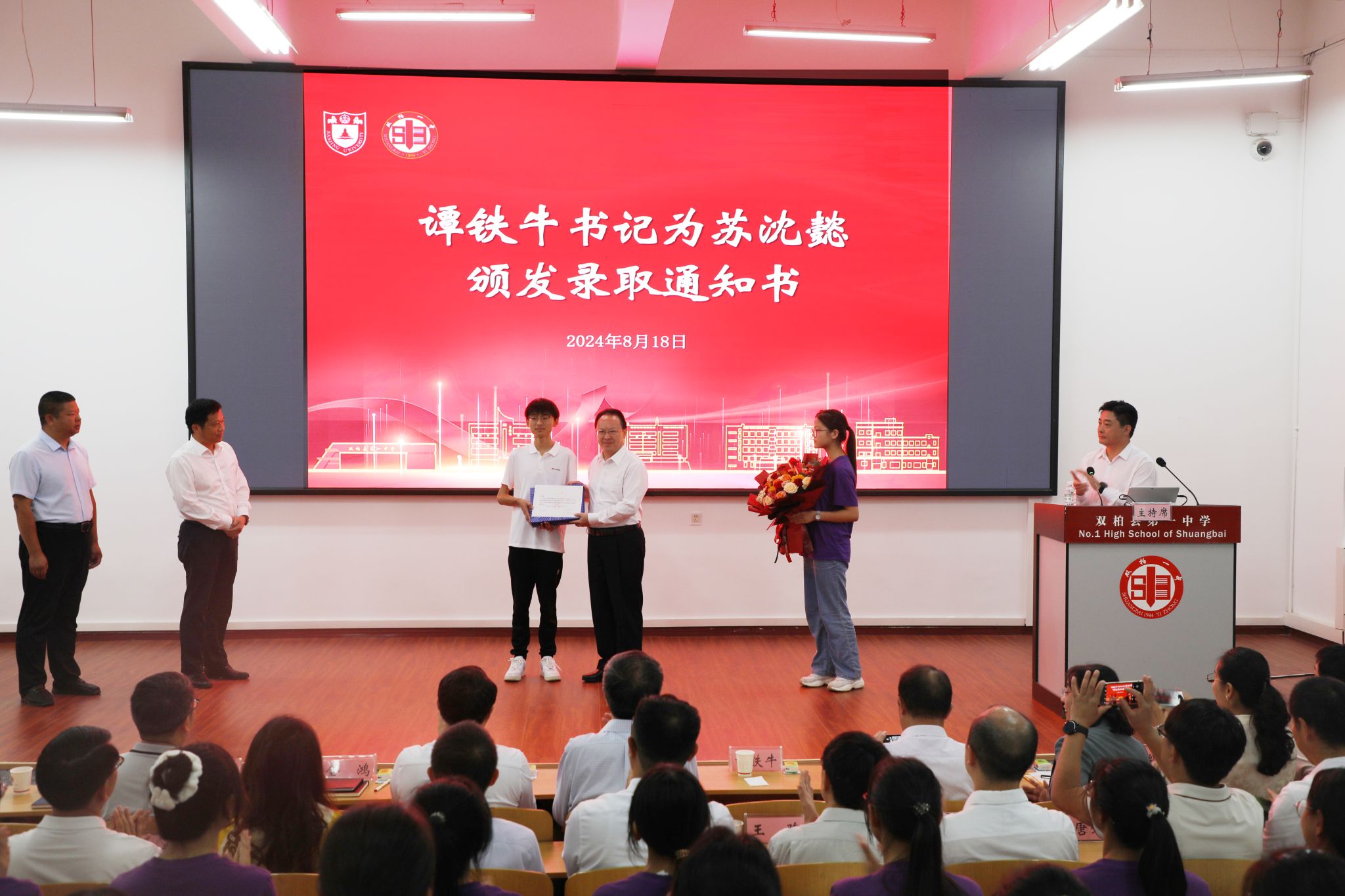 谭铁牛书记为双柏一中毕业生、南京大学新生苏沈懿同学颁发录取通知书