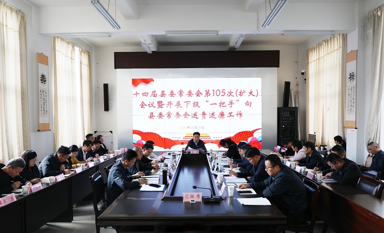 10月29日,县委书记金鸿主持召开十四届县委常委会第105次(扩大)会议,开展下级“一把手”向县委常委会述责述廉工作。他强调,全县各级各部门“一把手”要进一步增强捍卫“两个确立”、坚决做到“两个维护”的政治自觉、思想自觉、行动自觉,推动各级“一把手”担负起从严管党治党的政治责任和领导责任。