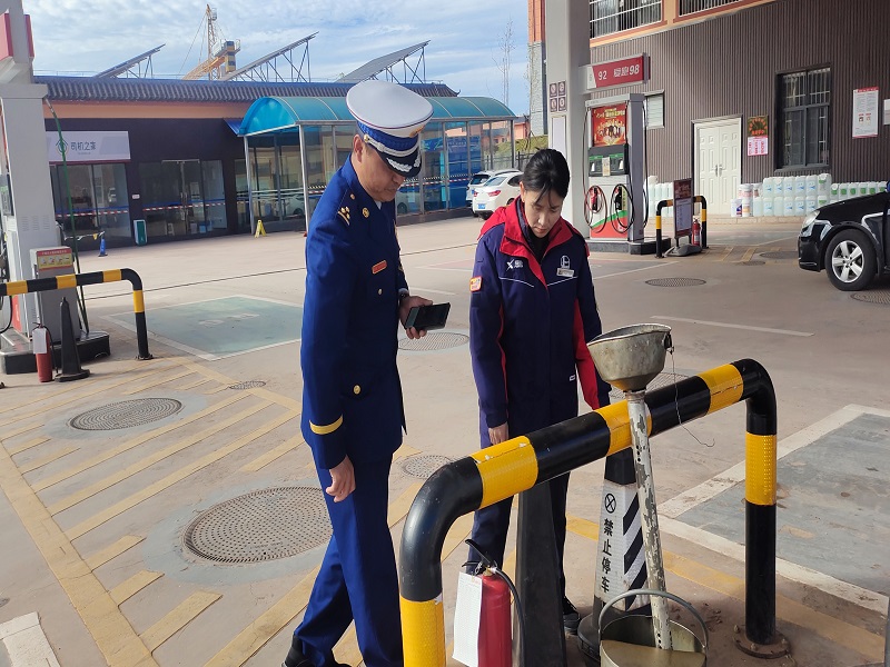 大队消防监督员重点紧盯加油站内的储罐区、加油区,查看加油设施设置、消防安全器材配备,了解管理人员是否经过消防安全培训、是否熟练掌握消防安全常识,日常巡查检查是否到位,消防安全管理制度和应急疏散预案是否制定,用电用火制度是否制定,并随机抽查员工消防器材使用情况。当场指出发现的问题,并责令立即整改。