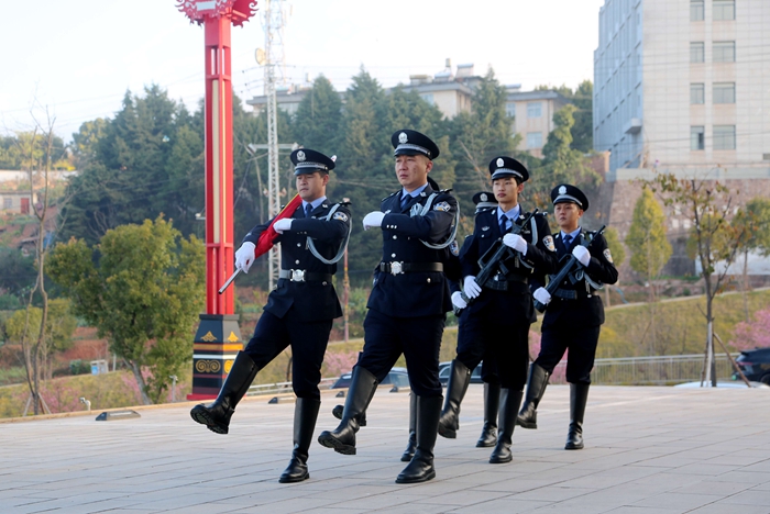 1月1日,伴随着2024年的第一缕阳光,双柏县公安局隆重举行元旦升国旗仪式。