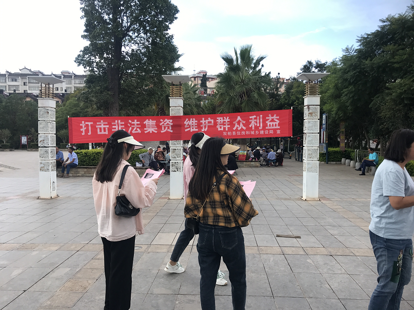 活动中,县住房城乡建设局积极贯彻落实各级“防范和打击非法集资”精神,组织人员到流动人口较为集中的农贸市场、广场等场所悬挂布标、发放宣传资料,对房地产领域非法集资知识进行宣传,进一步增强购房者防范非法集资法律意识,提高自我保护能力,从源头上遏制房地产领域非法集资违法犯罪活动的发生。