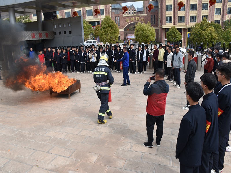 为全面推进消防安全集中除患攻坚大整治行动扎实开展,彻底整治重点场所突出风险隐患,进一步提高学校消防安全管理水平和从业人员消防安全意识,做好火灾预防,减少火灾事故,在新学期第二天,双柏县消防救援大队应邀为双柏县第一中学安全负责人、班主任、宿舍管理员、保安人员、全体学生开展培训,通过“现场授课、实操培训、灭火演练”的方式,集中上好春季学期消防安全开学第一课。