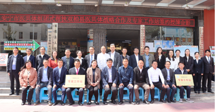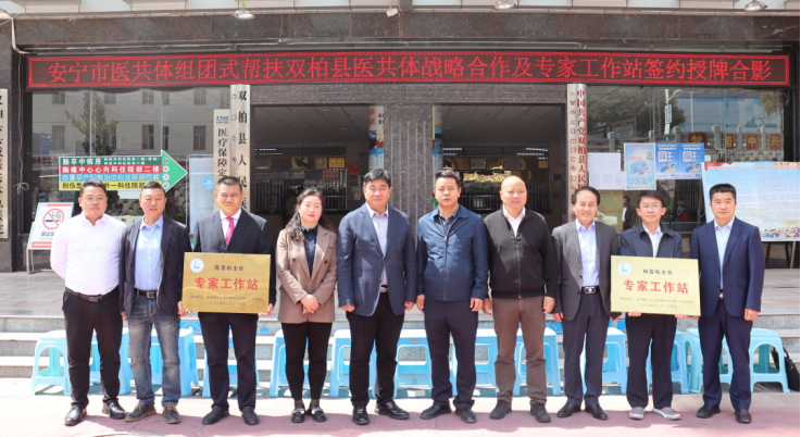 3月24日上午,安宁市医共体组团式帮扶双柏县医共体战略合作及昆明理工大学附属安宁市第一人民医院疼痛科陈雪松、杨富松专家团队工作站签约、授牌仪式在双柏县医共体总医院县人民医院举行。