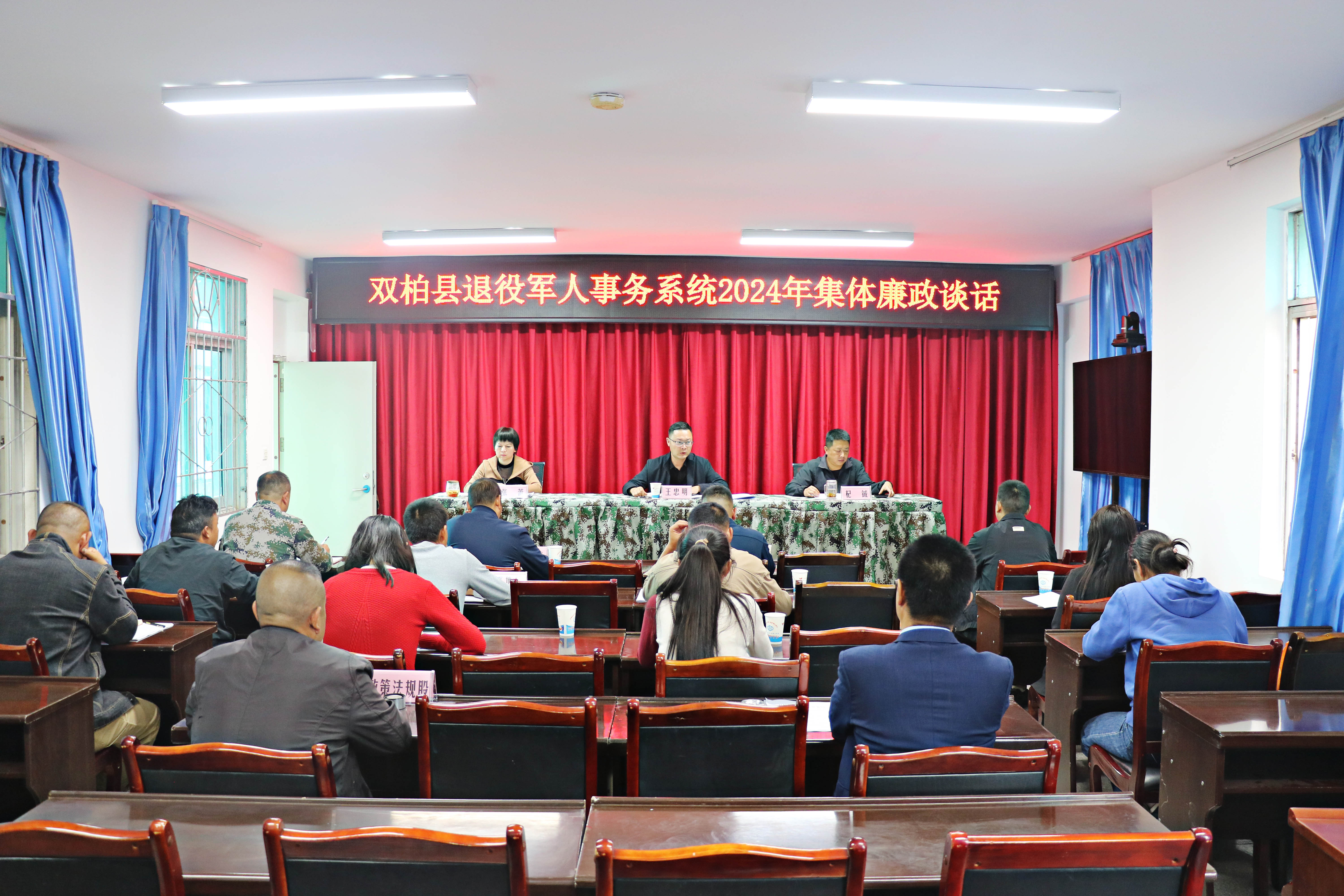 为深入贯彻落实全面从严治党主体责任,推进党风廉政建设和反腐败工作,会上,县退役军人事务局党组书记、局长王忠明与全体参会人员进行了集体廉政谈话。