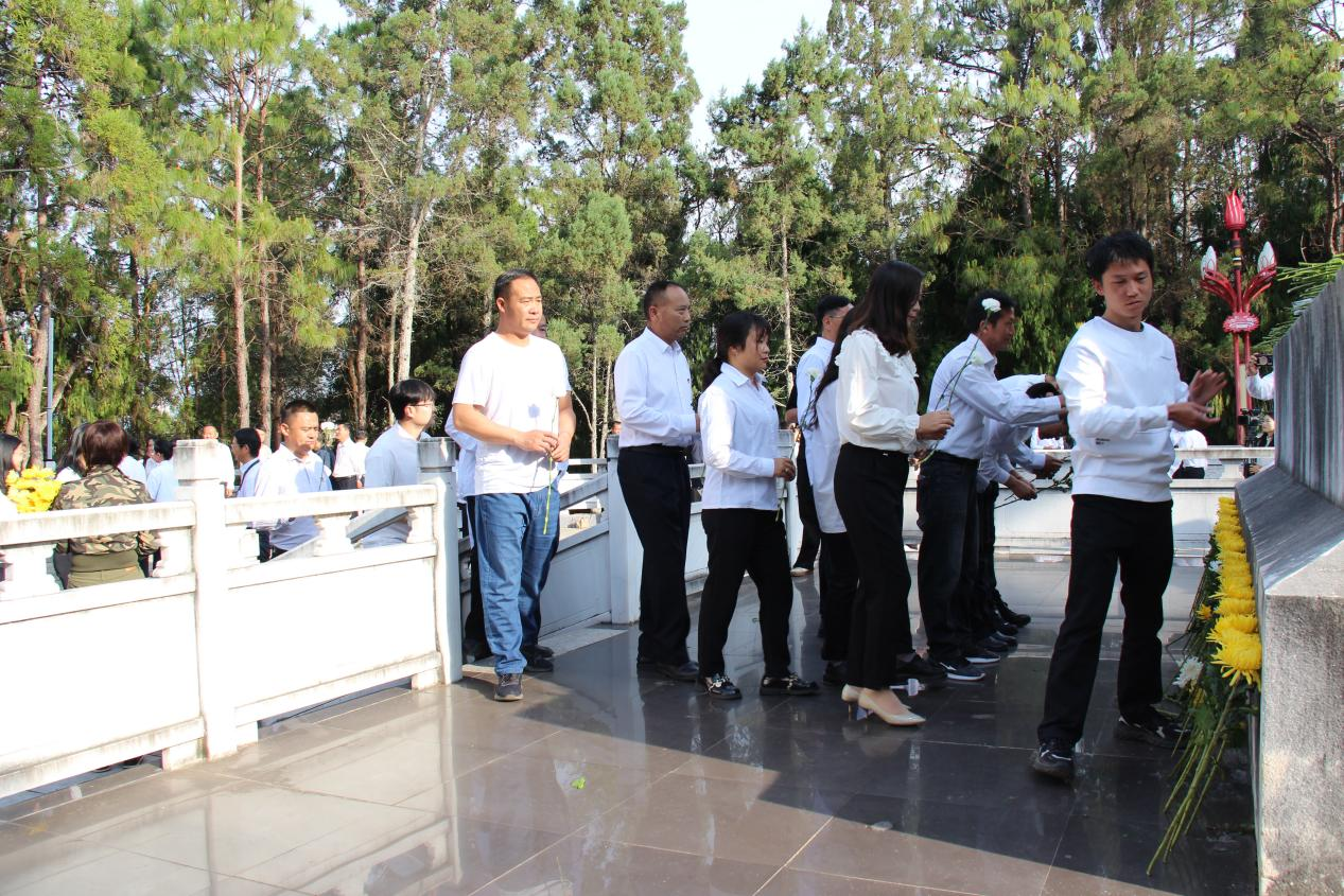 上午9时,查母公园烈士纪念碑前,祭扫活动在全体人员合唱国歌中拉开序幕。随后,全体人员向革命先烈默哀鞠躬后,依次瞻仰烈士纪念碑并敬献鲜花,向英勇献身的烈士们致以深切的缅怀和崇高的敬意。