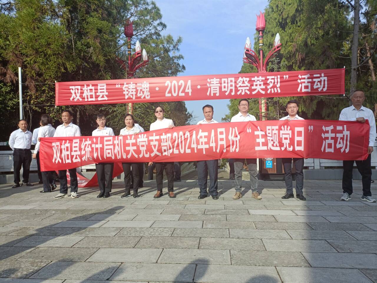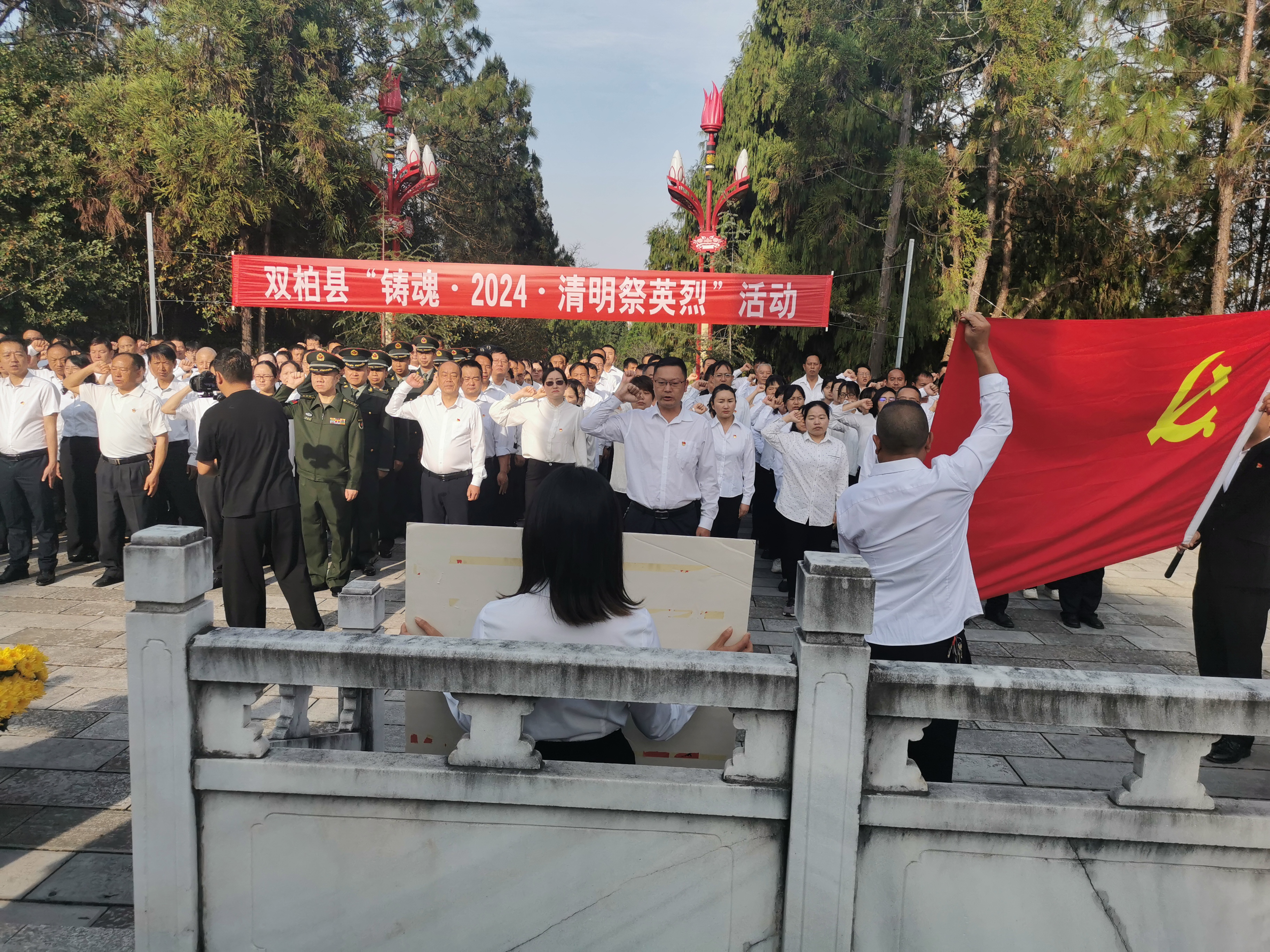 在革命烈士纪念碑下,举行了隆重的悼念仪式,默哀致敬、敬献鲜花,全体党员面对鲜红的党旗,高举右手,紧握拳头,重温入党誓词,铿锵有力的入党誓词,使在场的每位干部不禁想起了为祖国的解放及建设事业牺牲的革命先辈们,也深切感受到了作为一名干部所肩负的重担与责任。