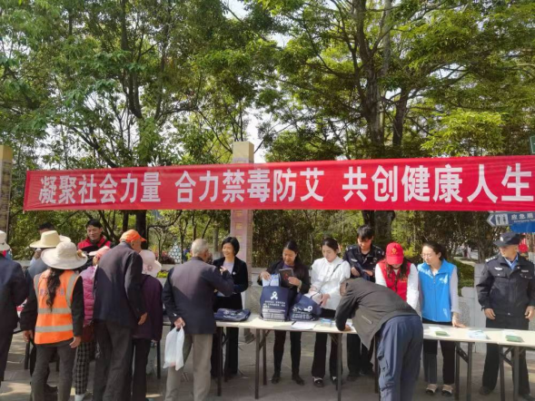 一是集中宣传咨询活动:4月3日上午,县禁毒委、防艾委成员单位、县城区医疗卫生单位共计38家单位在县城查姆广场举行集中宣传活动,本次宣传共计发放禁毒防艾宣传用折页300份、布袋300个、笔记本100本、云南省艾滋病防治条例读本70本、免费安全套100盒、悬挂主题布标1块、宣传展板3块、参加宣传活动工作人员45人、接受公众健康咨询100余人,本次宣传周的主题是“凝集社会力量 合力禁毒防艾 共创健康人生”,活动现场,工作人员向前来咨询的群众耐心科学讲解艾滋病的传播途径、毒品和艾滋病对人体健康的危害、如何预防毒品与艾滋病,引导群众拒绝毒品、远离艾滋、珍爱生命,践行健康生活方式。二是充分利用新媒体平台广泛宣传“每个人是自己健康第一责任人的”理念,普及禁毒防艾知识。持续推进禁毒防艾宣传教育进社区、进企业、进医院、进校园、进家庭活动,宣传周期间县防艾办禁毒办联合制定下发文件通知,要求各乡(镇)禁毒和防艾工作领导小组开展进社区活动,县市场监督管理局、县工信局等部门负责开展进企业活动,县卫生健康局负责进医院活动,县教育体育局负责进校园活动,各成员单位负责向本单位职工开展禁毒防艾宣传进家庭活动。三是要求全县各医疗卫生单位在宣传周期间对本单位医务人员开展一期禁毒防艾知识宣传培训,提高为艾滋病患者和吸毒社区康复人员的服务能力和水平,增强服务意识,加强隐私保护,优化服务流程,要求各单位设立咨询宣传点,主动为广大群众提供咨询、检测和宣传服务。