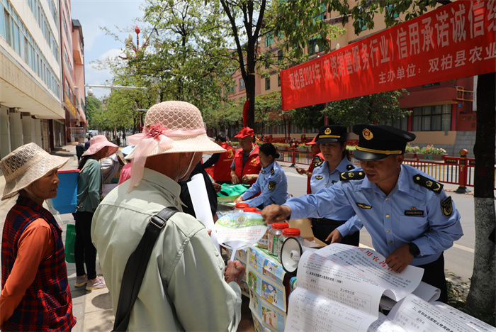 为守护粮食生产安全,切实维护广大农民群众切身利益,弘扬诚信理念,增强农资经营主体诚信经营意识,保障春耕备耕,守护农民合法权益。4月18日,双柏县农业农村局在县城妥甸街天开展了信用承诺诚信经营放心消费宣传活动。县农业综合执法股执法人员、局新时代文明实践志愿者、县城城区经营农资商家、居民群众参加活动。