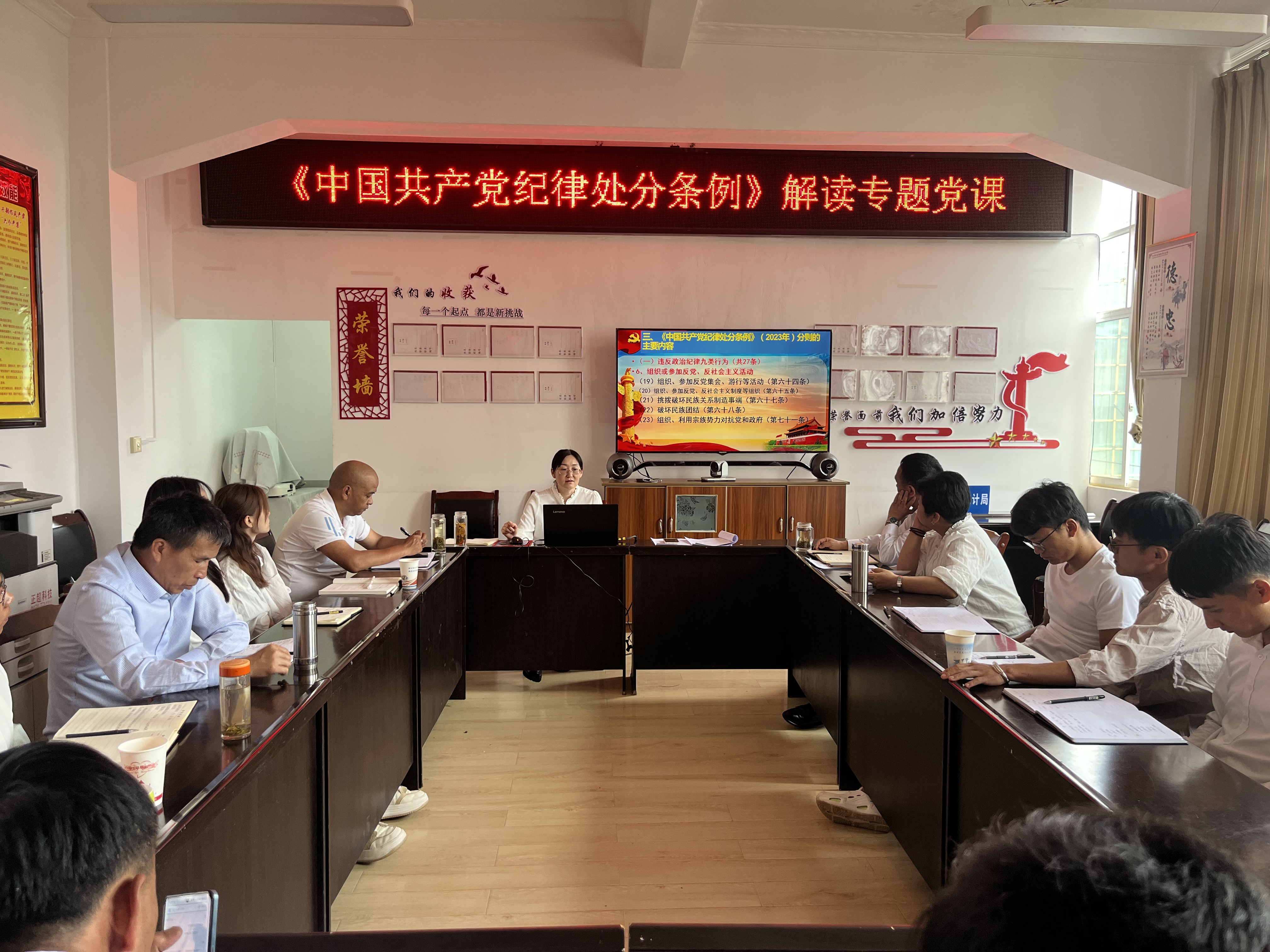 为深入学习领会新修订的《中国共产党纪律处分条例》(以下简称《条例》),引导党员干部明纪法、守底线,推动党纪学习教育走深走实,5月21日,县统计局机关党支部组织全体党员干部开展“党纪学习教育”主题党日活动。