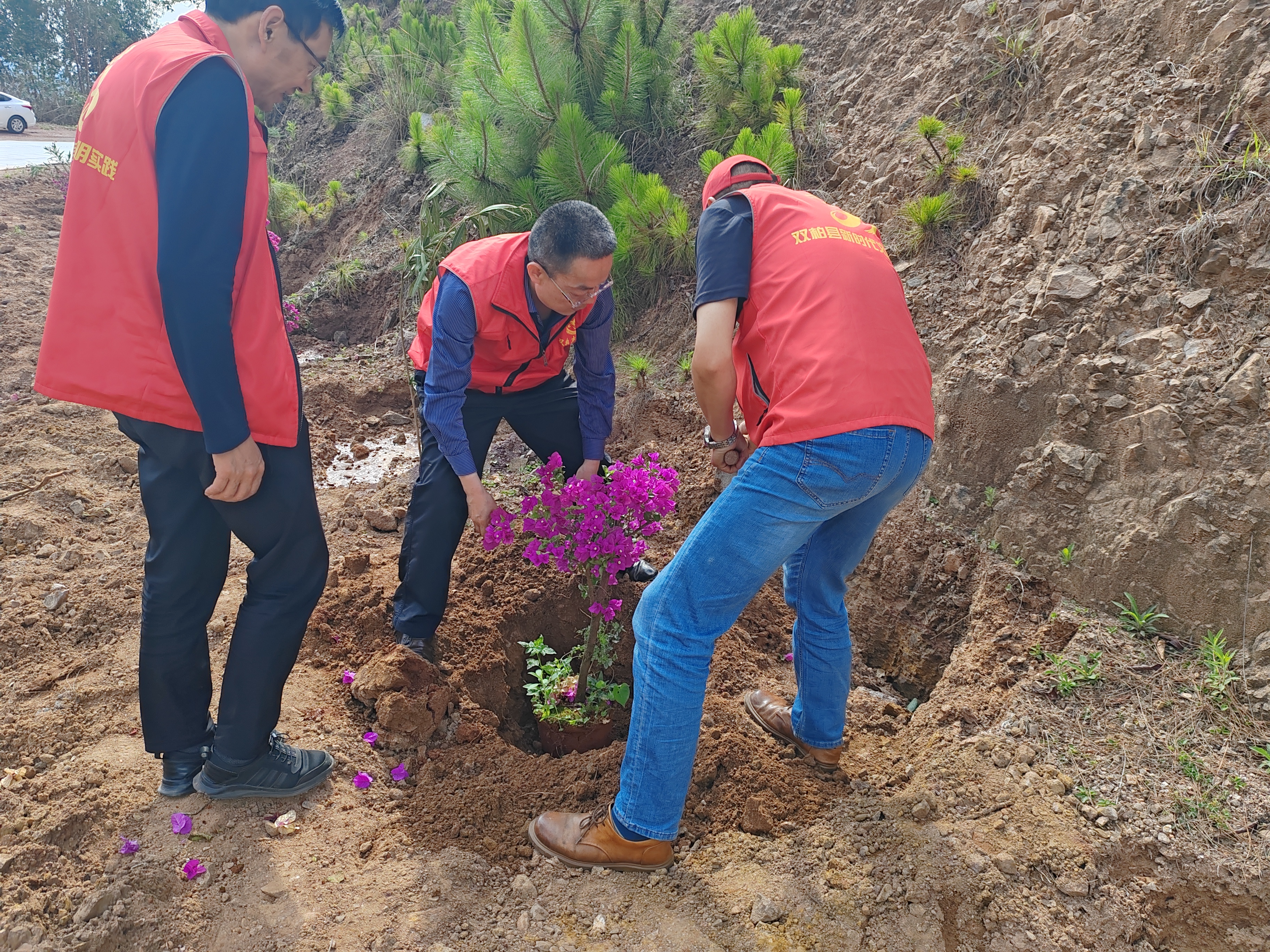 “种竹交加翠,栽桃烂熳红”。5月31日双柏县交通运输局2024年义务植树活动拉开序幕,局机关、县地方公路管理段全体干部职工积极参与,吹响了植绿号角,在茶叶箐至登高山公路沿线栽种云南樱花、叶子花等苗木,充分发挥党员干部的积极性,以实际行动践行习近平生态文明思想,为绿美交通再添新绿、再增新苗,助推“绿美交通”三年行动圆满收官。