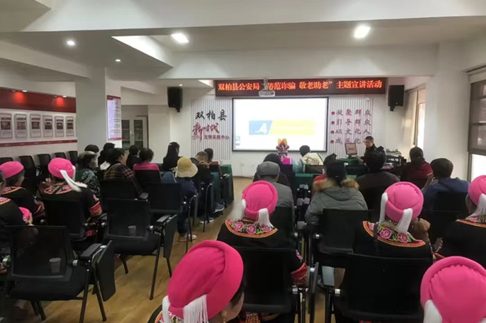 九九重阳节,浓浓敬老情。在重阳节来临之际,为切实提高辖区老年人防范各类电信网络诈骗的安全意识。2024年10月10日,双柏县公安局在双柏县新时代文明实践中心组织开展“防范诈骗、助老敬老”反诈宣传活动。