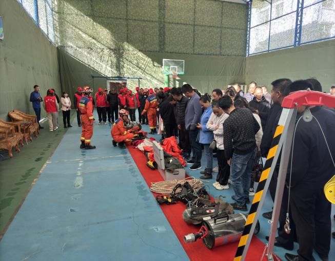 开展一次应急逃生演练。本次演练模拟办公楼一楼发生火灾,发现火情时,火势已开始蔓延,烟雾较大。现场人员迅速拨打119报警,各楼层楼长及时吹响消防哨,并组织本层人员用湿毛巾捂住口鼻从步梯有序逃生撤离,同时高层被困1人,由消防人员进入现场进行救援并成功救出。待火情结束后,全体人员在院内集合,消防员作灭火实操,详细讲解灭火器的使用方法和使用流程,并由演练人员进行了操作实践。