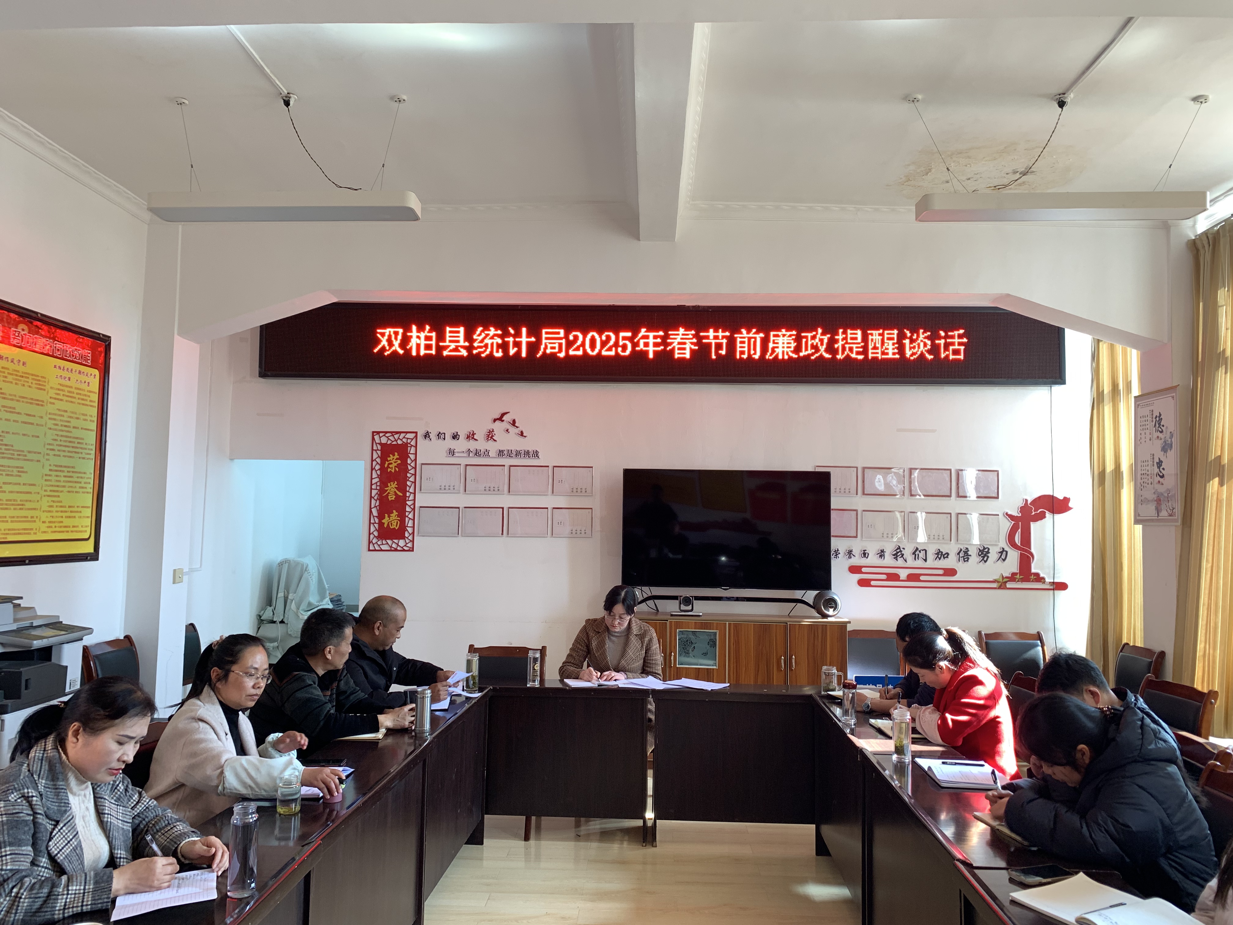 为持续深入推进全面从严治党,进一步严明工作纪律,落实党风廉政建设第一责任人责任,营造风清气正的良好氛围,1月26日,双柏县统计局召开春节前集体廉政谈话会,局党组书记、局长苏泽英作集体廉政提醒谈话,局领导班子及全全体干部职工参加会议。