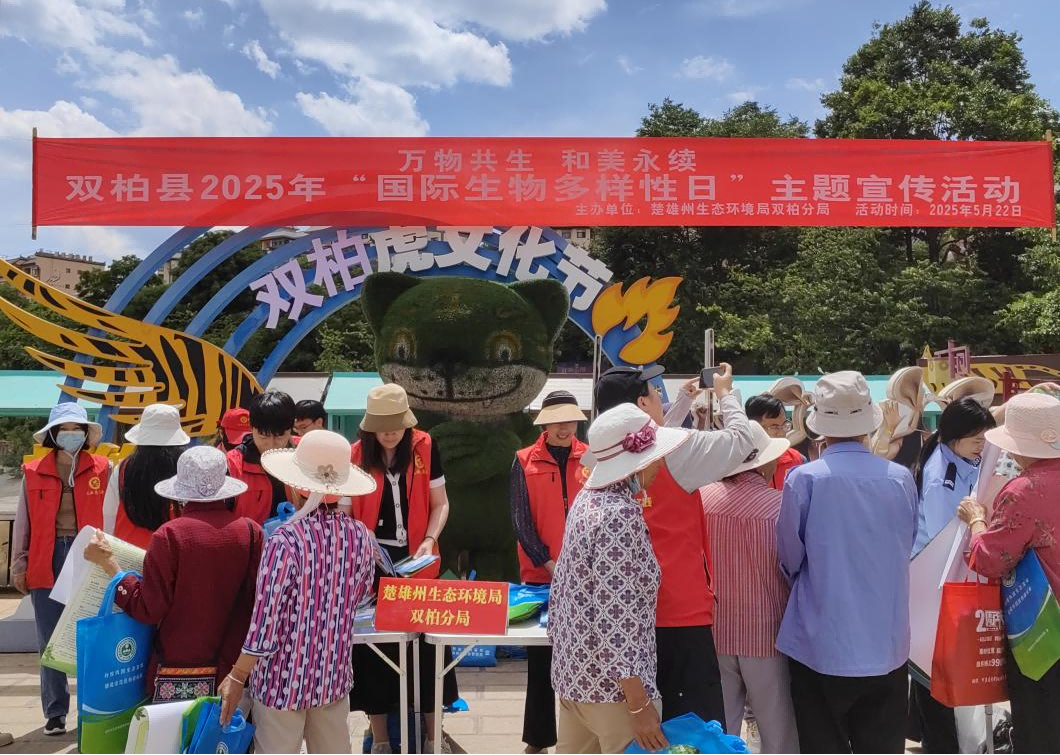 为深入贯彻落实习近平生态文明思想和习近平总书记三次考察云南重要讲话精神,提高公众对生物多样性保护的认识。5月22日,楚雄州生态环境局双柏分局联合县委宣传部、县发展改革局、县林草局等15家单位到查姆广场开展双柏县2025年“国际生物多样性日”主题宣传活动,以实际行动守护双柏生态资源宝库。