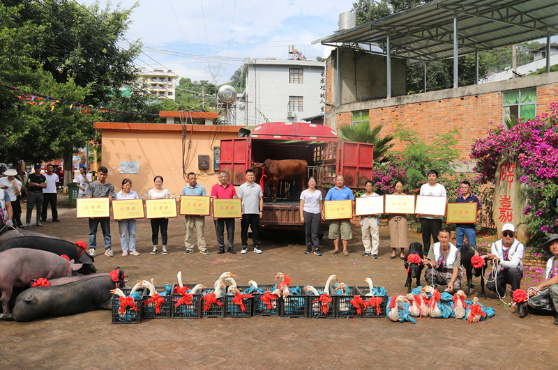 颁奖现场,热闹非凡,获奖商家脸上洋溢着喜悦的笑容,本地壮黄牛、黑山羊、密架山猪、大鹅皆为(石咢)嘉特色养殖农产,这份来自土地的馈赠,是对商家辛劳付出最好的奖励。