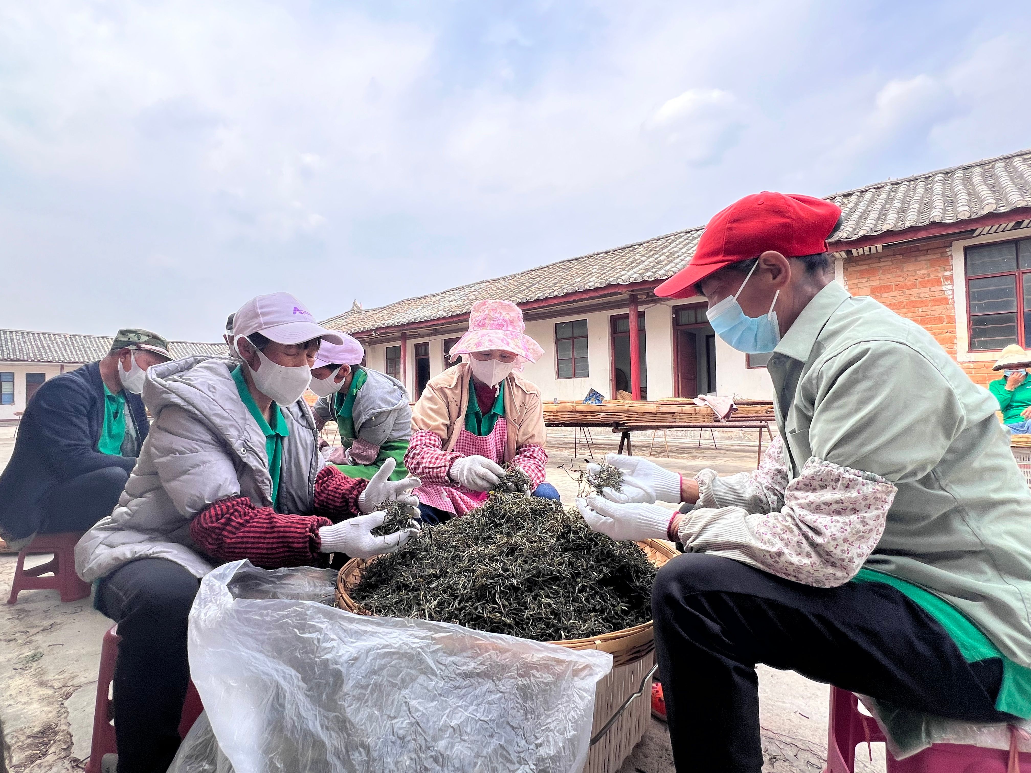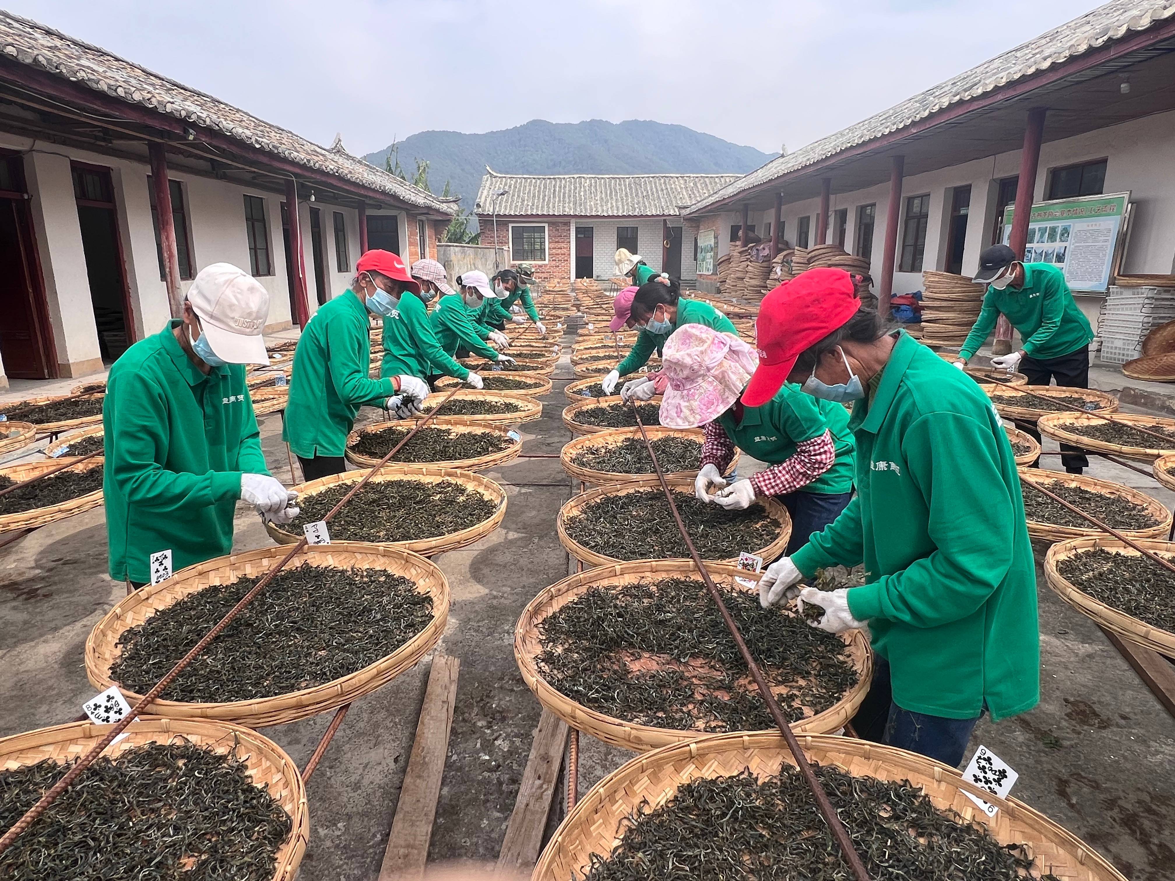 新鲜采摘的茶叶从茶山运往茶厂,茶厂内又呈现出另一番忙碌的景象,工人们有条不紊地进行着杀青、揉捻、晾晒、包装等一系列工序。车间里,工人们快速而熟练地翻动茶叶,鲜叶在高温作用下迅速失水,清新的茶香瞬间弥漫开来;杀青后的鲜叶在工人们的手中翻滚、挤压,逐渐被塑造成型,香气和滋味进一步得以释放;晾晒过程中,晒场上的工人时刻留意着温度与湿度,通过晾晒,使鲜叶的青草气逐渐消退而产生清香,制成的茶叶味道醇厚而不苦涩;在包装车间,工人正在打包茶叶,动作娴熟而高效,现已有百余箱茶叶销往上海、江苏、浙江、江西等全国20多个省市。