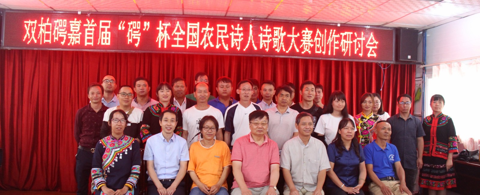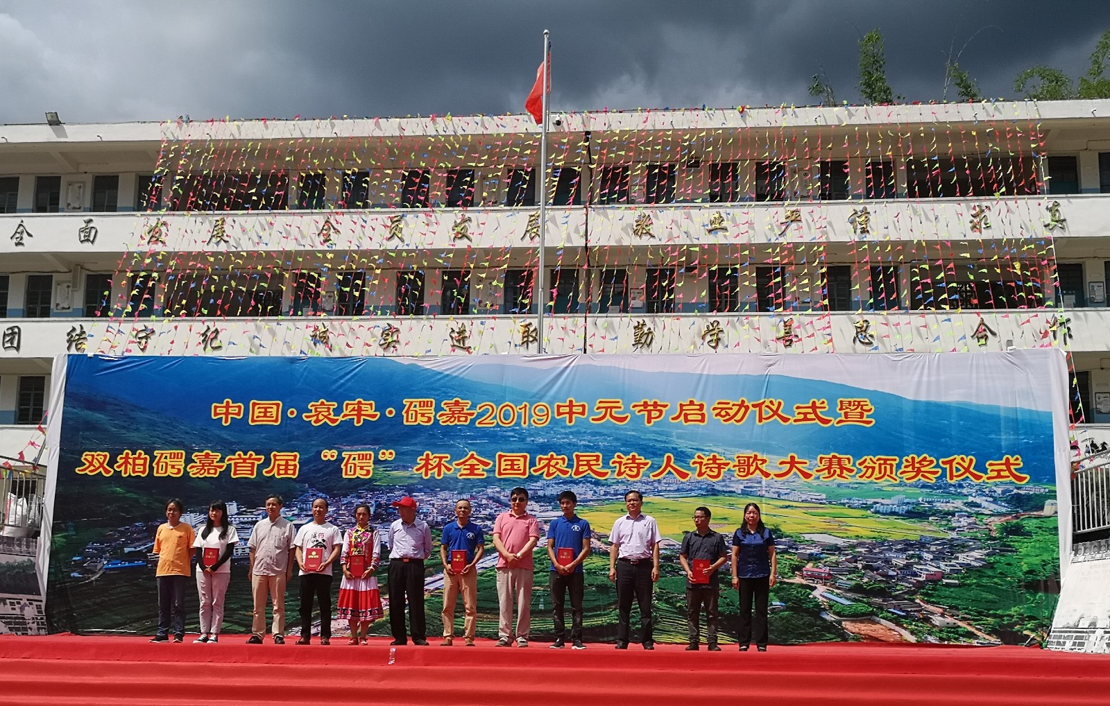 大赛自2019年7月2日发布征稿启事启动以来,大赛组委会共收到全国100多名农民诗人朋友提交的100多件作品,这些作品反映了双柏县(石咢)嘉的自然风光、厚重的民族文化、和谐的社会环境、民情风俗等。为期一个月的征稿结束后,组委会办公室对征集到的稿件进行了匿名处理,邀请国内知名作家诗人叶延滨、雷平阳、霍俊明、罗振亚、李小松五位老师进行评审,经过公平、公正的评选和为期三天的公示后,最终评选出一等奖一名、二等奖三名、三等奖五名、优秀奖十名,在8月14日的中国•哀牢•(石咢)嘉中元节启动仪式上,对部分获奖作者进行颁奖。