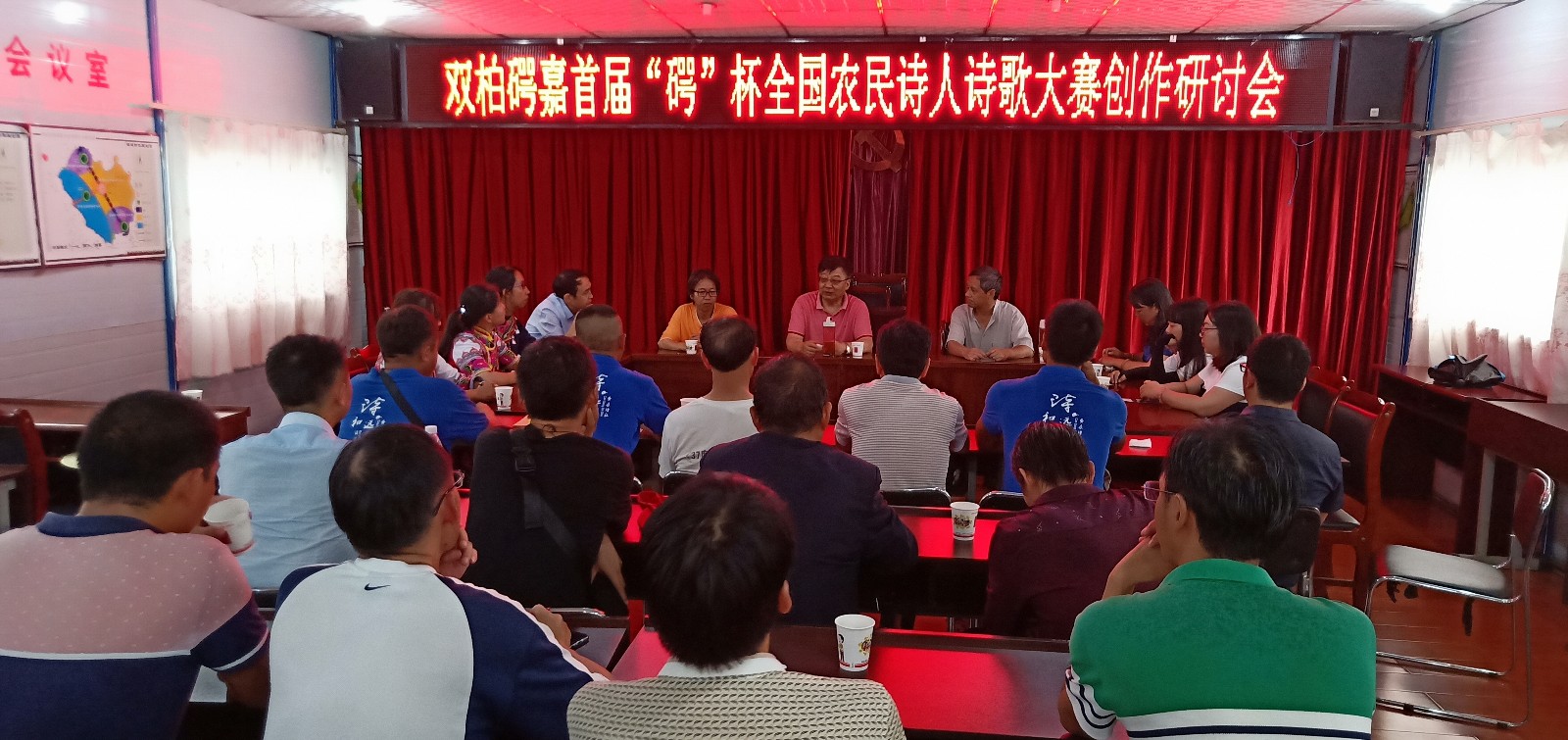 颁奖典礼结束后,评审组嘉宾中国作协诗歌委员会主任、著名诗人叶延滨老师,云南省作协常务理事、昆明市作协副主席、《滇池》文学杂志执行主编李小松老师,楚雄州文联党组成员、兼职副主席、楚雄州作协主席张永祥老师和部分获奖作者以及双柏县领导干部、文学爱好者、农民诗人30余人在(石咢)嘉镇政府会议室召开了双柏(石咢)嘉首届“(石咢)”杯全国农民诗人诗歌作品大赛创作研讨会。获奖作者在会上发表了获奖感言,与会诗人、文学爱好者就创作中的困惑和问题向几位老师进行了请教,老师们从自己的写作历程出发,用通俗易懂的语言,耐心的给予了讲解和答复,并勉励双柏的作者不忘初心,勤加创作,去发现生活中的真善美,创作出更多更好的作品。