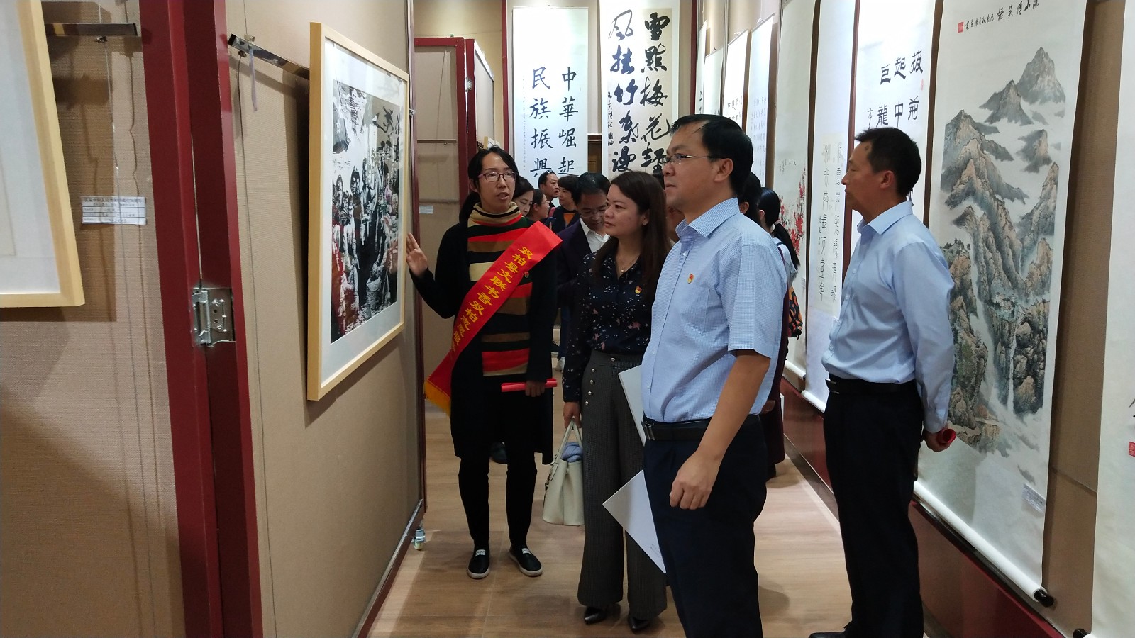9月27日下午,双柏县庆祝中华人民共和国成立70周年书法美术摄影展在双柏县图书馆开展。