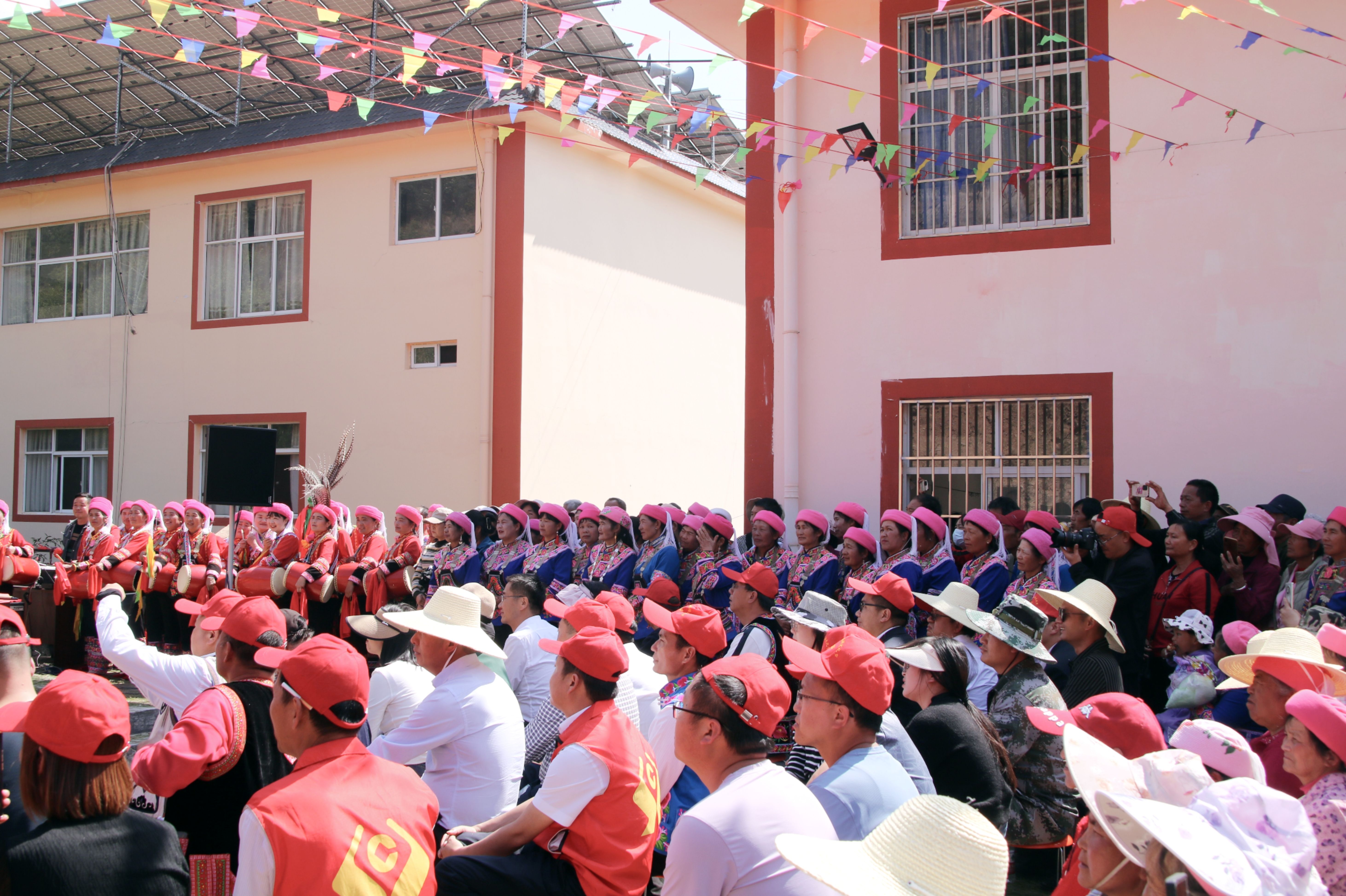 锣鼓声声响,巍峨的石碑山下热情似火的彝家儿女唱起火火的歌谣,文艺演出在各村代表队民俗展演中拉开帷幕。民间舞《花鼓舞》、歌曲《石碑山下》《留客调》、舞蹈《三月六》《正月十五闹花灯》等11个精彩节目在法念新时代文明实践舞台轮番上演,既融合了传统民族文化元素,又饱含着对这片热土的眷恋,一个个文化“年货”让法念村既接地气又聚人气,为现场群众带来一场精彩绝伦的民俗盛宴,现场洋溢着欢乐、喜庆的氛围。
