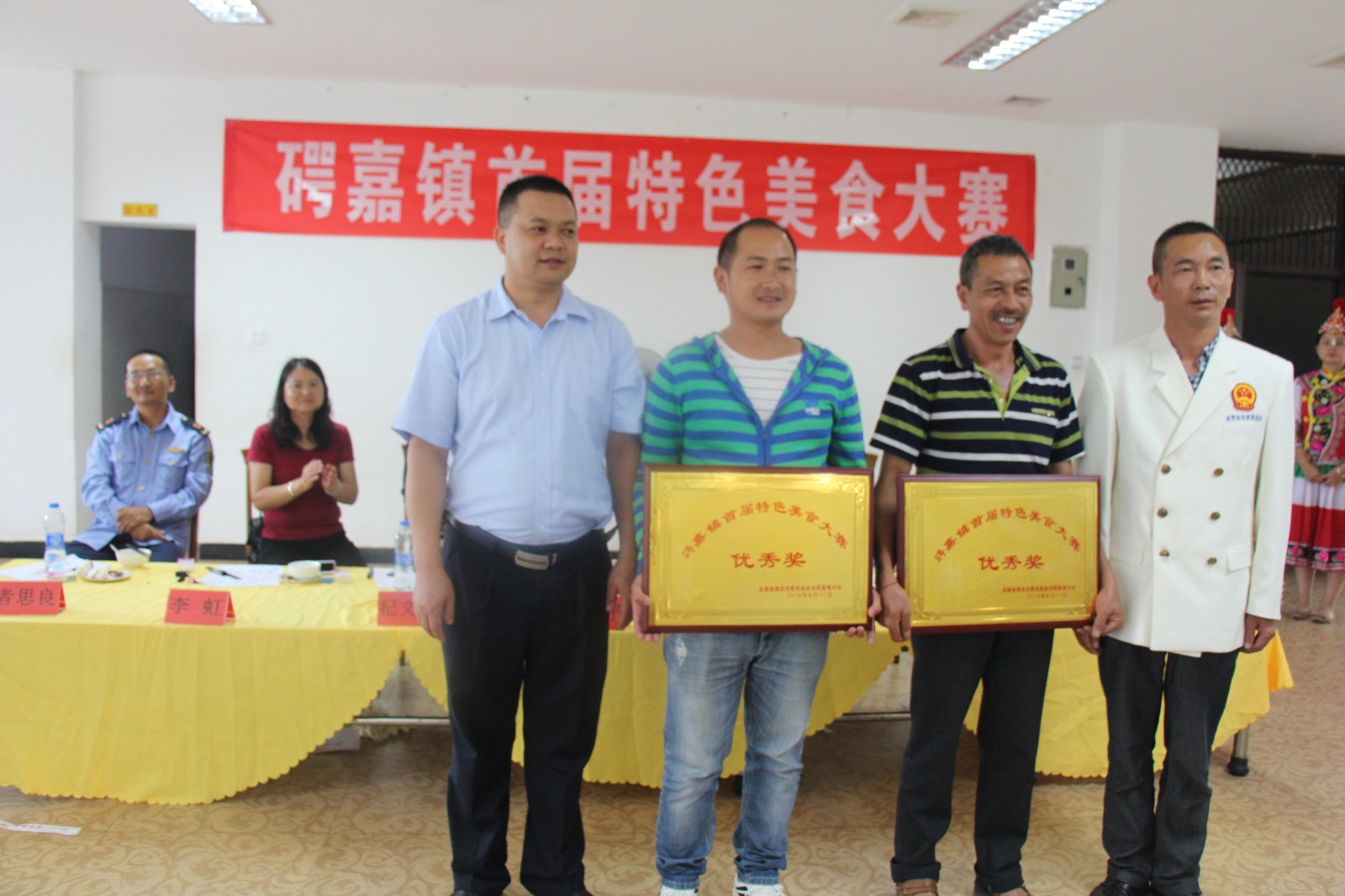经评委品鉴,洪明餐厅荣获首届美食大赛一等奖;福双喜大酒店、冰火天下荣获首届美食大赛二等奖;新兴鱼馆、悦兴园饭店、凤鸣山庄荣获首届美食大赛三等奖;福三宝养殖场、琳荣阁、嘉福楼餐馆、重庆火锅荣获首届美食大赛优秀奖;宾川海稍鱼馆、聚福楼、贵发牛肉馆荣获优秀组织奖。