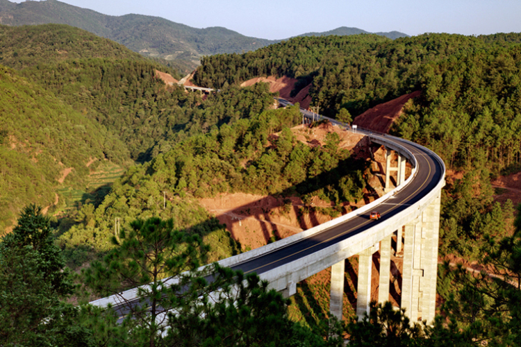 绿林中穿梭的元双路公路 (杨洪波 摄)