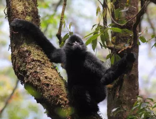 哀牢山上还生活着国家一级保护动物——黑长臂猿。它们像人类一样,生活在一夫一妻制的家庭群中,由一头雄兽、一头雌兽和一至三头幼兽组成。它们通过叫声来标志领地。