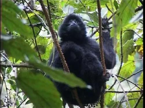 它们利用长臂灵活地穿梭在大森林中。它主要吃果子,偶尔也吃一些树叶。
