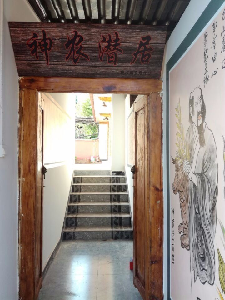 土家旧院留宿体验区,院名为“神农潜居”,药膳庄与神农尝百草传说相结合,引出“百草尝尽,甘苦自知,古今同理;万山看过,取舍由心,聚散是缘”的人生哲理,工作累了,到这里静下来,感悟人生,保养身体。走进农家旧院,可见已渐趋消失的儿时记忆中的农事生产生活用品,勾起无限乡愁。院内共设置住房五间,两间为普通住房,三间为院景一体的休闲式住宿区。有容斋,源于“海纳百川,有容乃大;壁立千仞,无欲则刚”。豪文苑,文人骚客舞文弄墨之奔放之所。醉卧轩,醉不醉,你自醉,留不留,我自留,醉则卧,醒则走。叠醉阁,意为绿海青山,生态养生,回归自然。逍遥庭,源于庄子逍遥游。