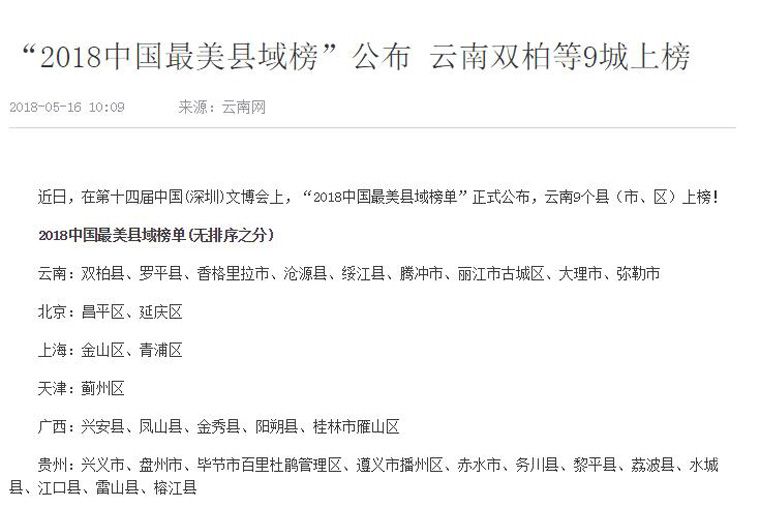 被评为中国最美县域榜单